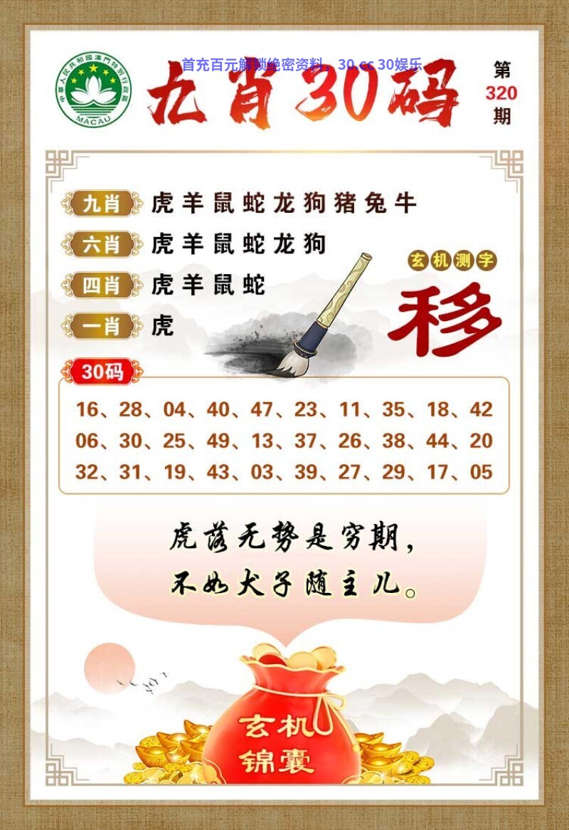 320期:⑨肖【兔狗羊马猪鼠蛇牛虎】开:虎28